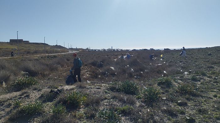 La playa elegida para realizar la actividad fue la de Peñón del Moro, debajo del Castillo de Guardias Viejas, y según Moisés Palmero, de El árbol de las piruletas, uno de los organizadores, “fue convocada de manera emocional, al comprobar cómo varios ciudadanos nos informaban de la gran cantidad de pequeños plásticos provenientes de la agricultura intensiva, que se habían depositado en las dunas embrionarias, cubiertas de azucenas, falso regaliz y perejil de mar, que caracterizan las playas de nuestro municipio. Éramos conscientes de que el Ayuntamiento limpiaría las playas con maquinaría, pero en esas dunas había que hacerlo de forma manual para conservar la gran biodiversidad que atesoran y la defensa a ultranza que hacen de la costa, por lo que nos pusimos manos a la obra”.