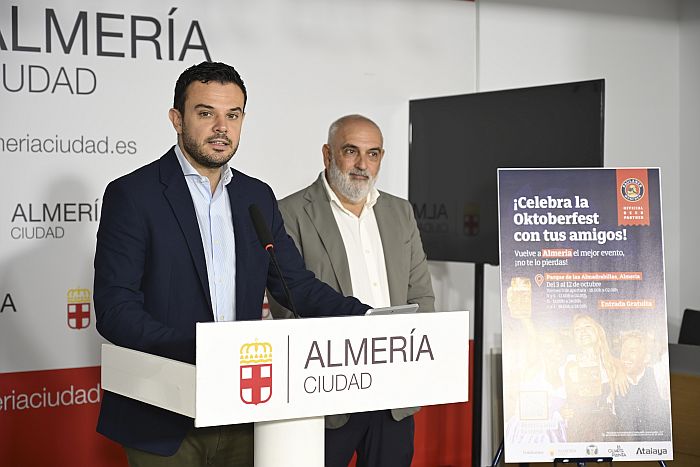 Los amantes de la buena cerveza y la gastronomía alemana están de enhorabuena. Un año más la ciudad de Almería se sumará a la tradición alemana de celebrar el Oktoberfest, uno de los eventos más populares a nivel mundial con la llegada del otoño desde hace más de 200 años que ha sido capaz de traspasar las fronteras de Múnich y adaptarse a cada ciudad. El concejal de Integración Social, Participación y Distritos, Óscar Bleda, y Jaime Villa, Área Mánager de Heineken en Almería y Granada, han sido los encargados de presentar esta nueva edición, que tendrá lugar del 3 al 12 de octubre en la gran carpa que se ubicará en el Parque de las Almadrabillas.