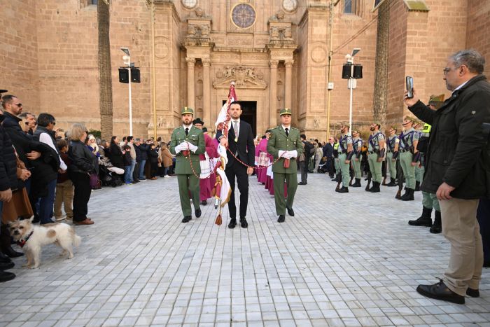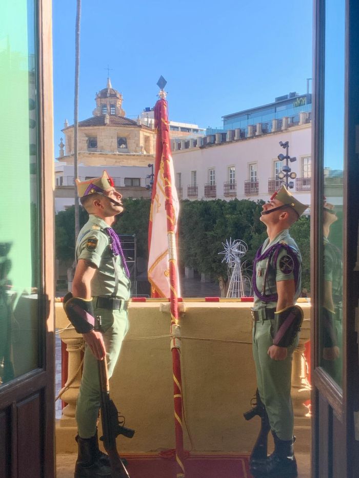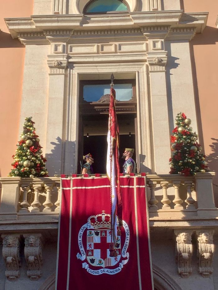 Como marca la tradición y a la hora señalada, las 08.00 horas, el Pendón, símbolo que recuerda la conquista de la ciudad por los Reyes Católicos, se ha colocado en el balcón de la Casa Consistorial, custodiado por miembros de la Legión. Se han iniciado así, un año más, los actos conmemorativos de la toma de la ciudad por parte de los Reyes Católicos y su anexión a la Corona de Castilla. Unos hechos que ocurrieron el 26 de diciembre de 1489 y por los que en la actualidad, hoy en su 536 aniversario, se rinde honor a la bandera que significó la entrada de las fuerzas cristianas en Almería durante el largo proceso de la Reconquista.