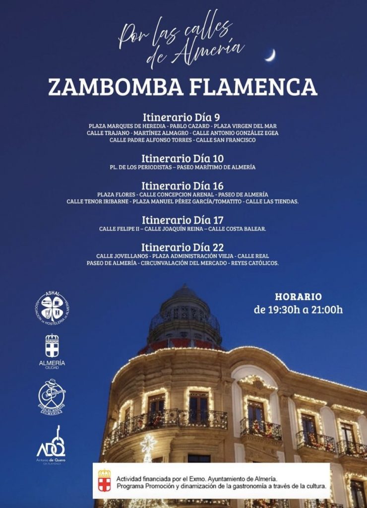 La Asociación Provincial de Empresarios de Hostelería de Almería (ASHAL) invita a la ciudadanía a vivir unas Navidades llenas de música, tradición y sabor local con la celebración de la Zambomba Flamenca, una propuesta cultural que arrancó ayer martes y recorrerá diferentes itinerarios de la ciudad hasta el próximo 22 de diciembre.