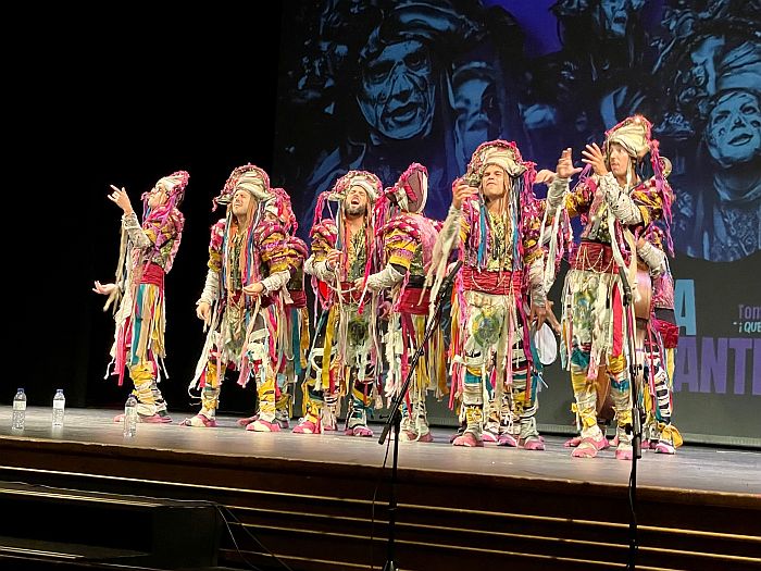 El espectáculo lo abrió la comparsa almeriense ‘Los escapistas’, que este año se alzó con el primer premio del Concurso de Carnaval de Almería. Demostraron que en casa también se canta con alma y se escribe con el corazón. Ofrecieron letras que combinaron sentimiento y crítica, abordando desde la situación de la juventud hasta las contradicciones de la sociedad actual. El sello almeriense se notó en cada frase, con referencias locales, giros propios del habla y una defensa del carnaval como herramienta de expresión cultural.