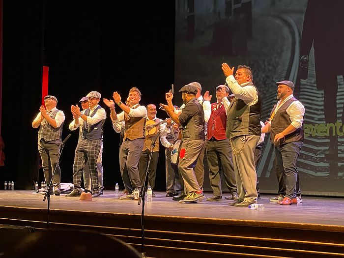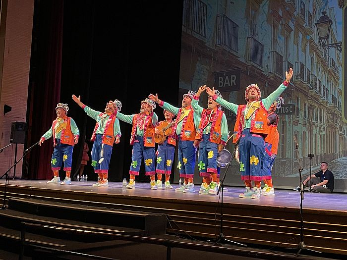 Llegó el turno de las agrupaciones gaditanas representadas por dos referentes. La chirigota ‘Los disléxicos’, cuarto premio del certamen gaditano, rompió con el tono más serio y encendió las carcajadas con su humor inteligente y lleno de dobles sentidos. Su tipo, basado en personajes que juegan con el lenguaje, les permitió sacar punta a equívocos, giros de palabras y situaciones absurdas con una brillantez que mantuvo al Auditorio riendo durante toda su actuación. Las letras, más allá del juego fonético, escondían dardos a situaciones de injusticia. La musicalidad de sus cuplés y el dinamismo del popurrí lograron una conexión inmediata con el público.