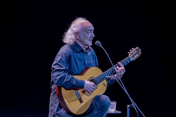 Entre tema y tema, el artista conversaba con serenidad y lucidez, recordando a sus maestros y amigos, citando versos de Rosalía o de García Calvo, entre otros, viajando del paisaje gallego al alma universal. El cierre llegó con ‘Adiós ríos, adiós fontes’, la despedida inevitable y emocionada a Rosalía de Castro, símbolo y raíz de su canto.