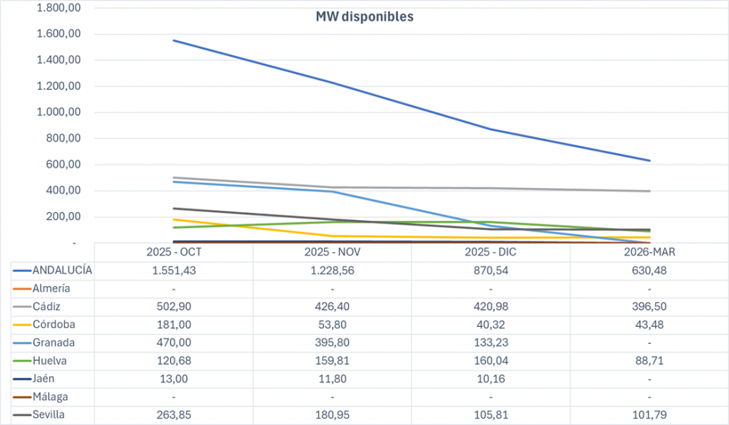 - Almería, Granada, Jaén y Málaga: cuatro provincias sin capacidad eléctrica disponible para nuevos proyectos.