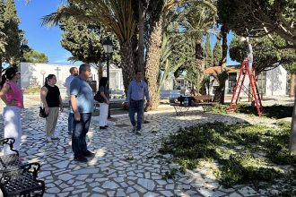 La visita ha discurrido por las diferentes dependencias y estancias del edificio, cuyas obras se encuentran ya en torno al 50%, de manera que los plazos de ejecución avanzan según lo previsto. Desde que diesen comienzo el pasado mes de febrero, se ha procedido a la sustitución de ventanas,sistema de iluminación Led, climatización y calefacción con sistema inteligente, purificadores de aire, y grifería e inodoros ecoeficientes. Además, se han modificado algunas dependencias para mejorar la atención al público y también se está renovando el suelo de todo el edificio. En cuanto a la estructura y fachada exterior, ya puede apreciarse el revestimiento con piedra natural en parte de la misma, así como se ha proyectado el nuevo acceso mediante un sistema compuesto por atrio de entrada, rampas y escaleras accesibles.