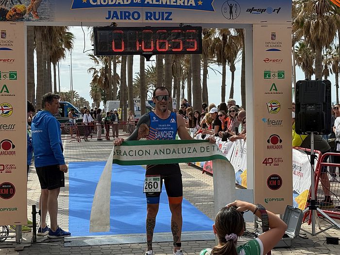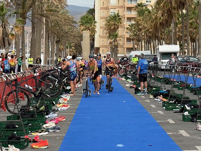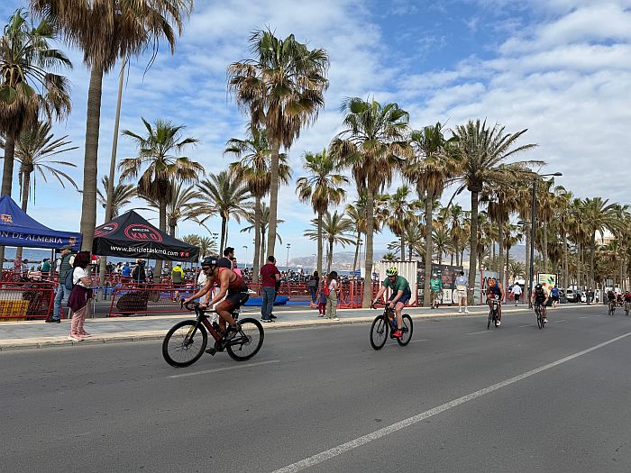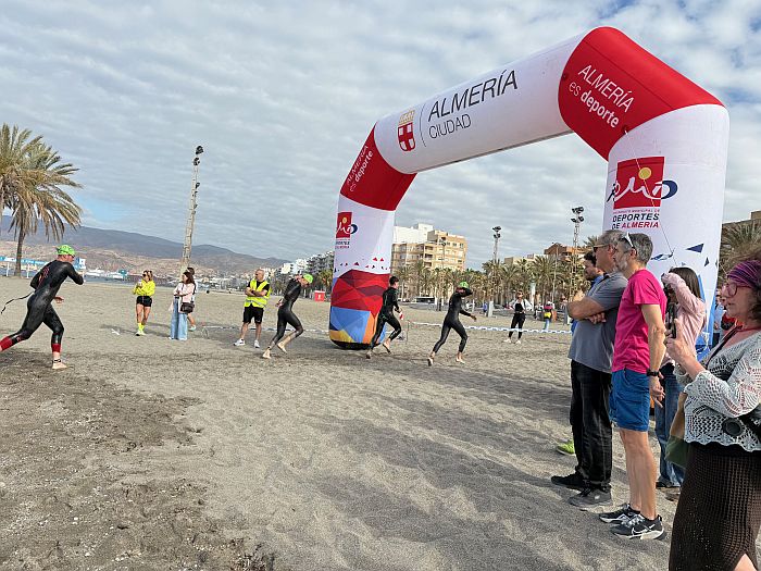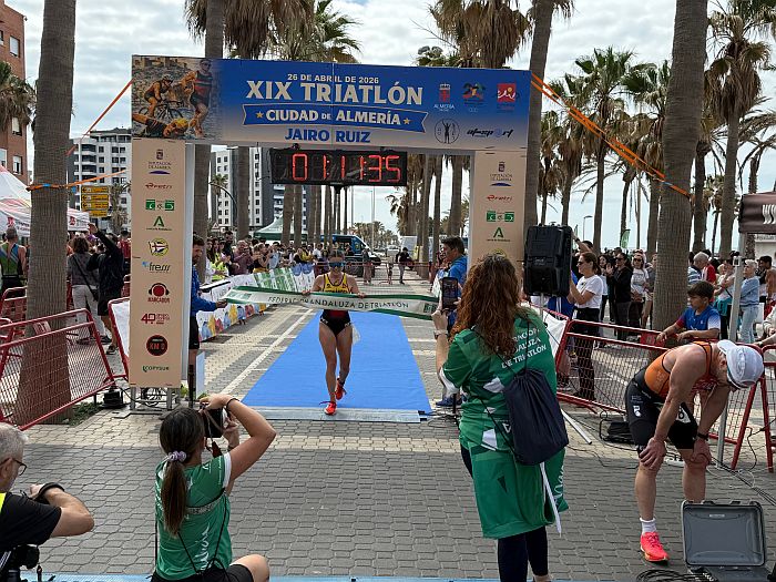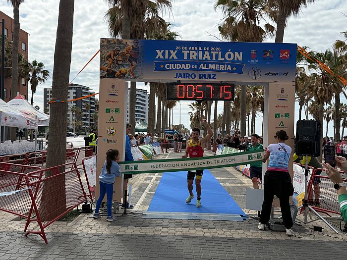 Un éxito. El XIX Triatlón Ciudad de Almería ‘Jairo Ruiz’ ha brillado tanto por la participación, como el recorrido y la organización. Un total de 261 participantes en un día muy agradable, que ha comenzado a las 10:00 h., cuando se han lanzado al mar, junto al Espigón de La Térmica, para nadar 750 metros, salir del agua en la Playa de El Palmeral, para subirse a la bicicleta y recorrer 20 kilómetros en dos vueltas a un circuito hasta la rotonda de la Universidad y un pequeño tramo de la Avenida Mediterráneo, y concluir con los aplausos del público tras correr 5 kilómetros.