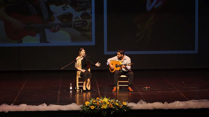 La cantaora Lucía López, acompañada por el guitarrista Francis Monge, emocionó al público con tangos, alegrías y una bulería final que puso los vellos de punta a un patio de butacas que también vibró con el brillo de la joven bailaora Patricia Giner y su interpretación de ‘Córdoba’, de Albéniz.