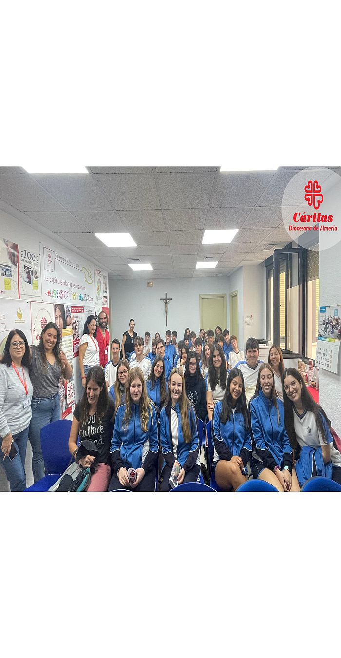 Cáritas Diocesana de Almería ha celebradolos días 6 y 11 de noviembre la primera edición de sus Jornadas de Puertas Abiertas a Escolaresbajo el lema “Actúa. Deja Huella en el Camino”. En su sede ha recibido la visita de 79 alumnos;tanto de 4o de ESO del colegio Nuestra Señora del Milagro; como de 1o de bachillerato del ColegioStella Maris. Se trata de una experiencia que ha permitido a los jóvenes conocer de cerca cómotrabaja la Iglesia a través de Cáritas acompañando y apoyando a las personas más vulnerables.