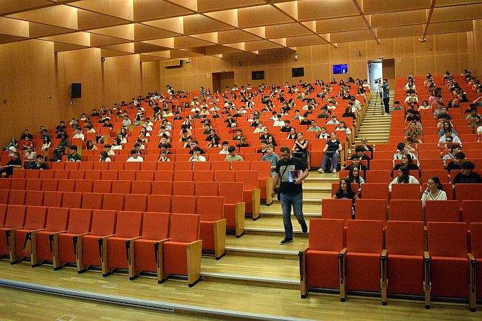 Una cifra que se repite año tras año demostrando la buena salud de las matemáticas entre los estudiantes más jóvenes gracias a iniciativas como esta. “Hemos tenido que repartir los estudiantes entre el Paraninfo y el Aulario III para la prueba escrita para que puedan estar más cómodos. Se repiten los datos del año pasado, pero con un centro más. Ya son 44 los que participan en esta edición. Estamos poniendo límite de participación por centro debido a que tenemos unos medios limitados, aun así son muchos participantes y por eso este año se ha cogido también el Aulario III”, ha explicado el organizador del evento el catedrático de la UAL, Enrique de Amo.
