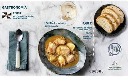 Correos suma una nueva hoja bloque a su colección filatélica dedicada a la gastronomía española, en esta ocasión rindiendo homenaje a la tradición culinaria de Ceuta dentro de la serie “Gastronomía: E...