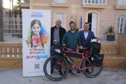 El alcalde recibe al deportista, que recauda fondos para que la Fundación Vicente Ferrer compre bicis a niños y niñas para ir a clase El alcalde de Carboneras, Salvador Hernández, ha trasladado el apo...
