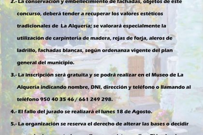 La barriada de La Alquería de Adra celebra, un año más, su tradicional concurso de embellecimiento y conservación de fachadas ‘Barrio Histórico’ que tendrá lugar el próximo lunes, 18 de agosto. El Ayu...