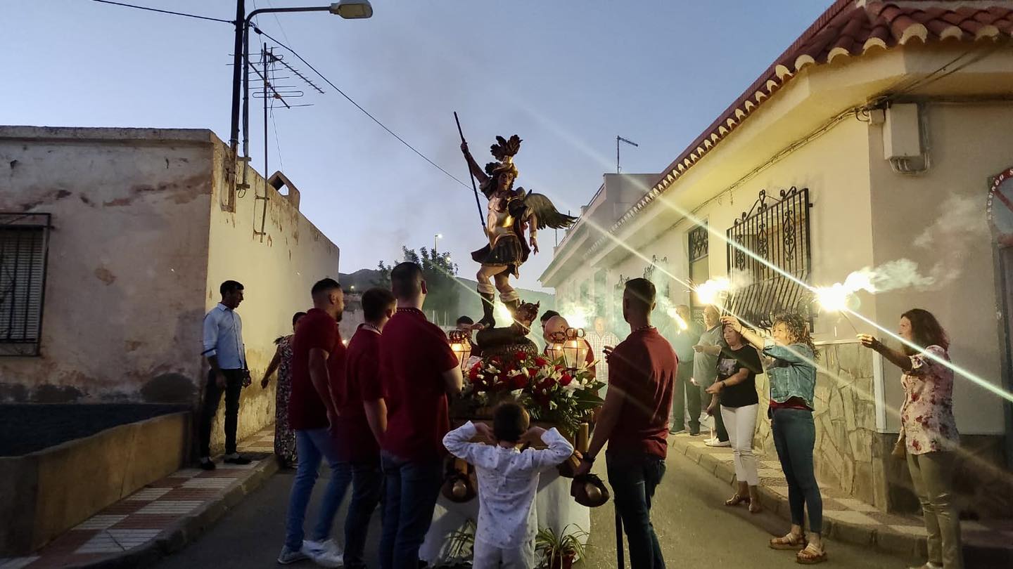 Por la tarde, a las 18:30h, se realizará el traslado de San Miguel y Santa Bárbara desde el Ave María hasta el Recinto Ferial de Los Cerrillos, donde a las 19:00h se oficiará la Santa Misa antes de la procesión, que saldrá a las 20:00h, acompañada por la Banda de Cornetas y Tambores Clavos de Cristo y la Banda Municipal de Música de Berja.