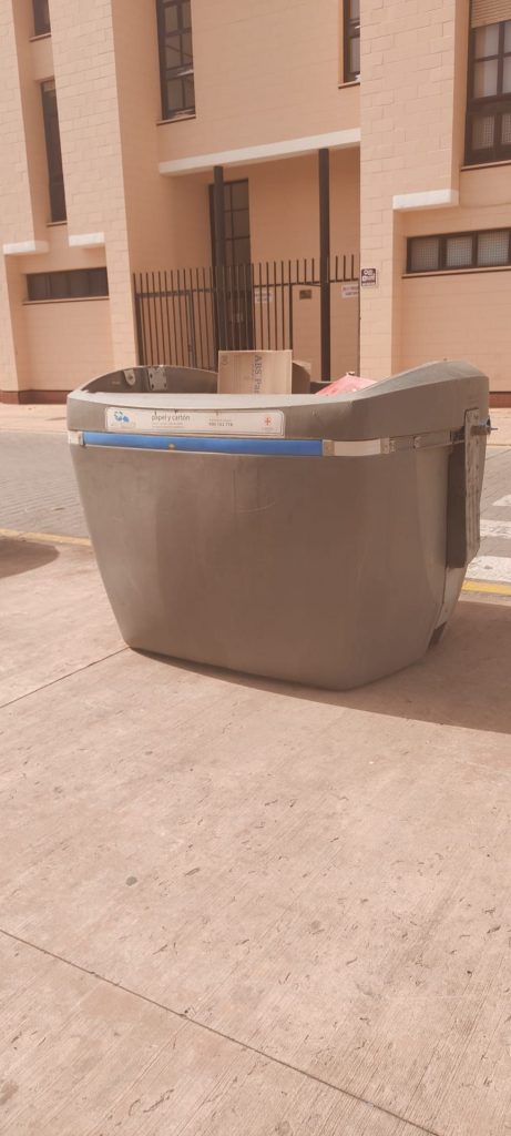 Contenedor sin tapadera en Plaza Colón de Ciudad Jardín