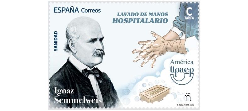 Correos ha presentado un sello dedicado a la práctica del lavado de manos en el ámbito hospitalario, implantada de forma pionera por el cirujano y obstreta húngaro Ignaz Semmelweis. Esta emisión forma parte de la serie ‘América UPAEP’, que desde 1989 reúne a los países miembros de la Unión Postal de las Américas, España y Portugal en torno a una temática común. En esta edición, el tema elegido ha sido la sanidad.