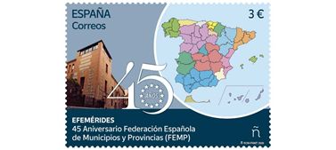A lo largo de este año, la FEMP conmemora su 45º aniversario con la celebración de jornadas, actos culturales y deportivos, la emisión de este sello de Correos, de una moneda conmemorativa y la celebración de sorteos.