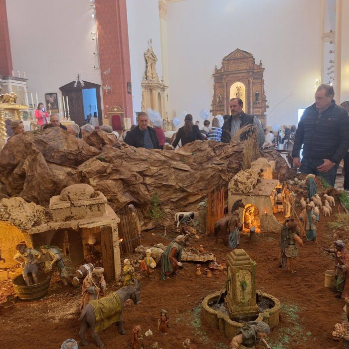 Durante el acto, las autoridades recorrieron detenidamente el montaje, deteniéndose en las distintas escenas que recrean con minuciosidad los pasajes tradicionales del Nacimiento. El Belén destaca por su cuidada elaboración artesanal, la ambientación paisajística y la incorporación de detalles que convierten cada rincón en un espacio evocador. La Hermandad ha vuelto a apostar por un diseño que combina tradición, originalidad y un profundo respeto por el legado religioso y cultural del municipio.