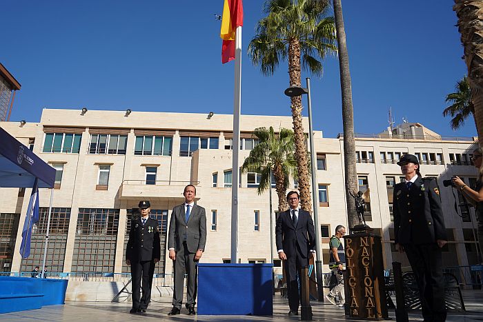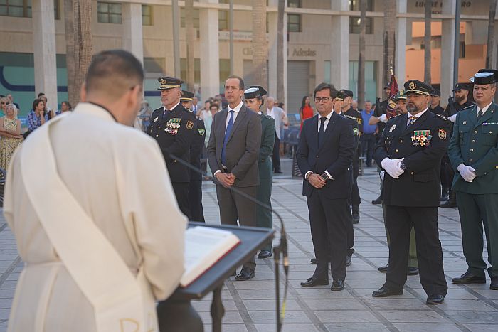 El alcalde de El Ejido, Francisco Góngora, ha ensalzado la labor que realiza en el municipio la Policía Nacional durante la celebración del Patrón del Cuerpo Policial, los Santos Ángeles Custodios, cuyo acto institucional se ha celebrado en la Plaza Mayor y al que ha precedido una solemne Misa oficiada por el párroco Don Mariano Delgado.