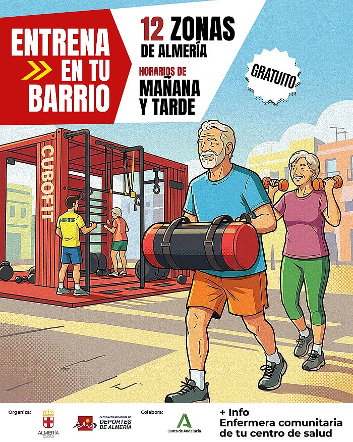 El Ayuntamiento sigue dando pasos adelante en el compromiso por hacer de Almería una ciudad más saludable, más activa y, sobre todo, más cercana. Y en ese camino se enmarca el programa ‘Entrena en tu barrio’, que, tras el éxito de la experiencia piloto del pasado curso, ahora se refuerza.