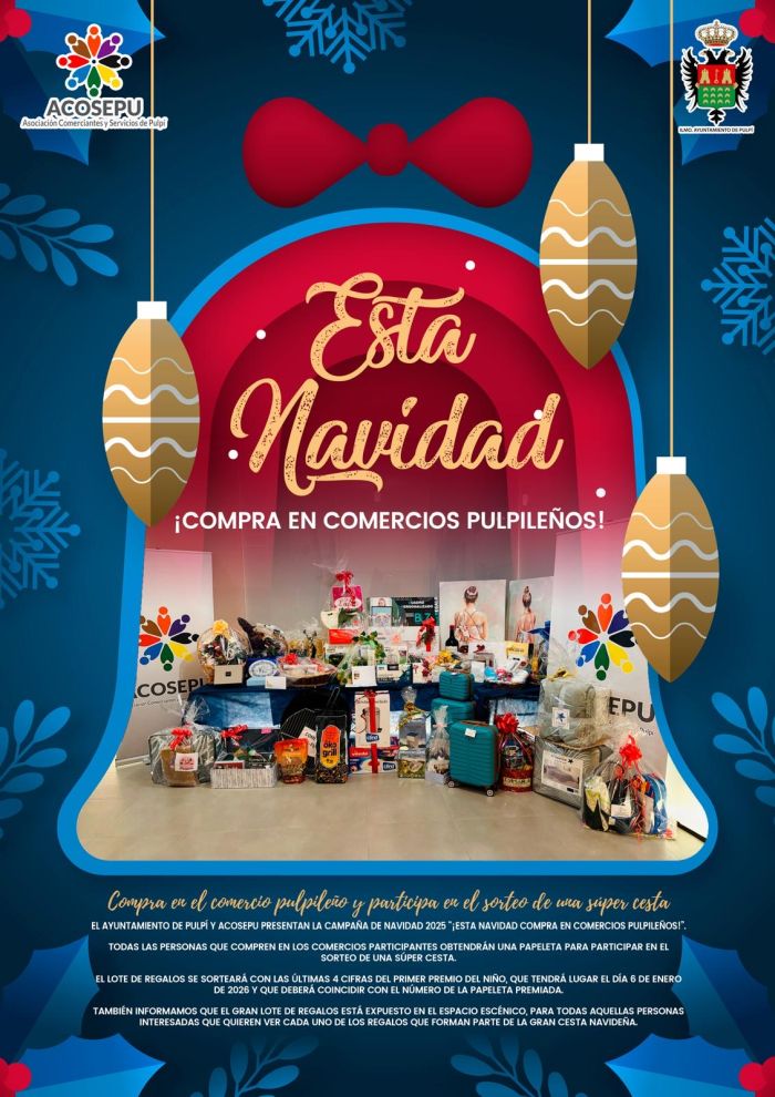 La concejal de Comercio, Fina Garcia Parra, anima a todos los pulpileños y visitantes a realizar sus compras navideñas en los comercios del municipio y a participar en el sorteo de una magnífica súper cesta navideña, repleta de productos y regalos donados por los establecimientos participantes.