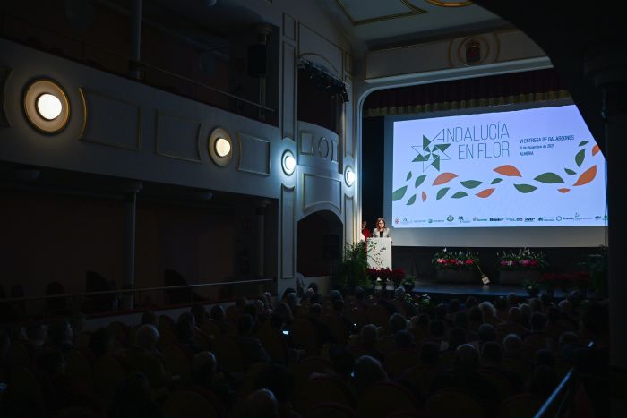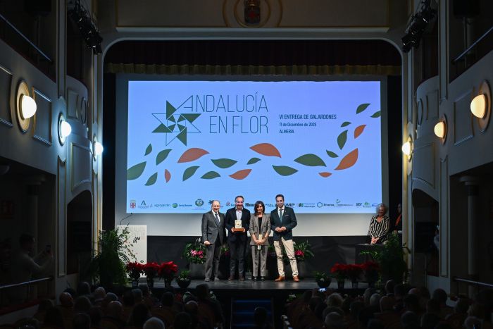 Así lo ha trasladado durante la VI entrega de premios ‘Andalucía en Flor’ que se ha celebrado este jueves en el Teatro Apolo, donde ha estado acompañada por el concejal de Agricultura, Agua y Zonas Verdes, Juan José Segura, por el delegado territorial de Sostenibilidad y Medio Ambiente de la Junta de Andalucía en Almería, Manuel de la Torre, por el presidente de la Asociación Multisectorial de la Jardinería Andaluza (AMJA), Juan Manuel Ruiz, y por el presidente del Consejo Andaluz de Colegios Oficiales de Ingenieros Técnicos Agrícolas, Fernando Paniagua.