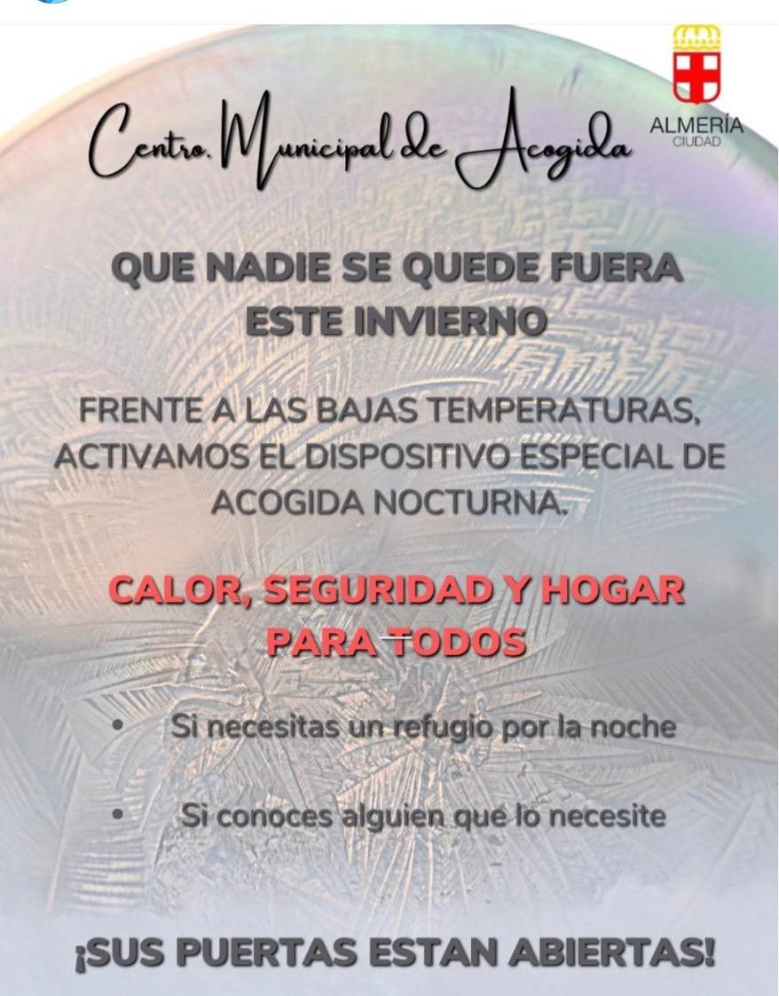 Durante estos días, como ha detallado Óscar Bleda, tanto la Unidad de Calle, “que está en constante contacto con este colectivo”, como la Policía Local de Almería van a intensificar la labor informativa a las personas sin hogar para trasladarles que pueden hacer uso de este recurso para protegerse del frío.