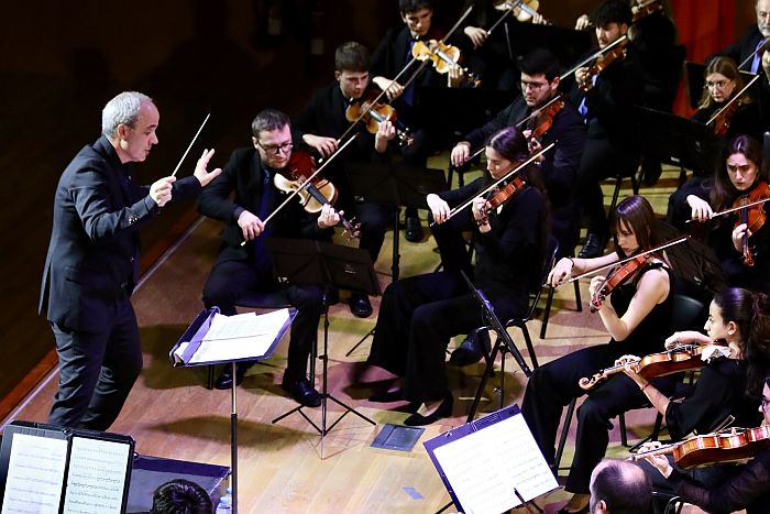 Por su parte, Juan José Navarro ha reconocido que todo el proceso ha sido “un gustazo” porque “el repertorio es muy bonito y lo estamos disfrutando mucho”. Sobre la sinfonía de Weill, “no se hace habitualmente”, y sobre ‘El amor brujo’, “rendir homenaje a Manuel de Falla, que es nuestro más grande y más ilustre compositor andaluz, con una de sus obras maestras”. Al respecto de estar en el Paraninfo, “nos tiene que salir bien porque jugamos en casa -sonrisa-, y sí, la verdad es que estamos contentos porque ha habido un apoyo muy importante del público”. También se ha referido al reto de sumar el talento vocalista de Lidia Plaza: “Lo más importante es estar siempre innovando y haciendo cosas nuevas; nunca habíamos hecho nada de Falla en esta orquesta, ni tampoco se había hecho nada con una cantaora, sí con cantantes clásicas, entonces es completamente nuevo, así como la sinfonía de Weill, y eso hace que haya vida dentro de la orquesta de la Universidad de Almería”.