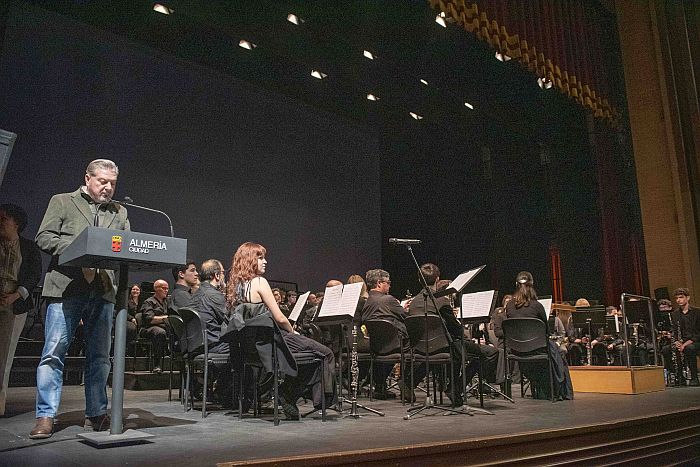 El concejal de Cultura, Tradiciones y Educación, Diego Cruz, desde el escenario, dio la bienvenida, afirmando que “les puedo asegurar que mi satisfacción es TRIPLE. Por los ingredientes que este evento tiene para la Cultura, para las Tradiciones y para la Educación. Desde el punto de vista de la Cultura: porque seguimos ofreciendo la mejor y más variada programación para que los almerienses disfrutemos de múltiples propuestas, que vienen llenando todos los espacios municipales; desde el punto de vista de las Tradiciones podemos asegurar que esta fusión entre la Banda Municipal de Música de Almería y el Real Conservatorio Profesional de Música ‘Julián Arcas’ de Almería se ha convertido, en solo tres años, en un auténtico clásico que ya damos por consolidado en nuestra agenda; y desde el punto de vista de la Educación este velada también es mucho más que un concierto. Es una cita muy especial porque cerca de 40 alumnos del Conservatorio pueden participar en un concierto de primer nivel, adquiriendo una experiencia que va más allá de currículos o pruebas teóricas”.
