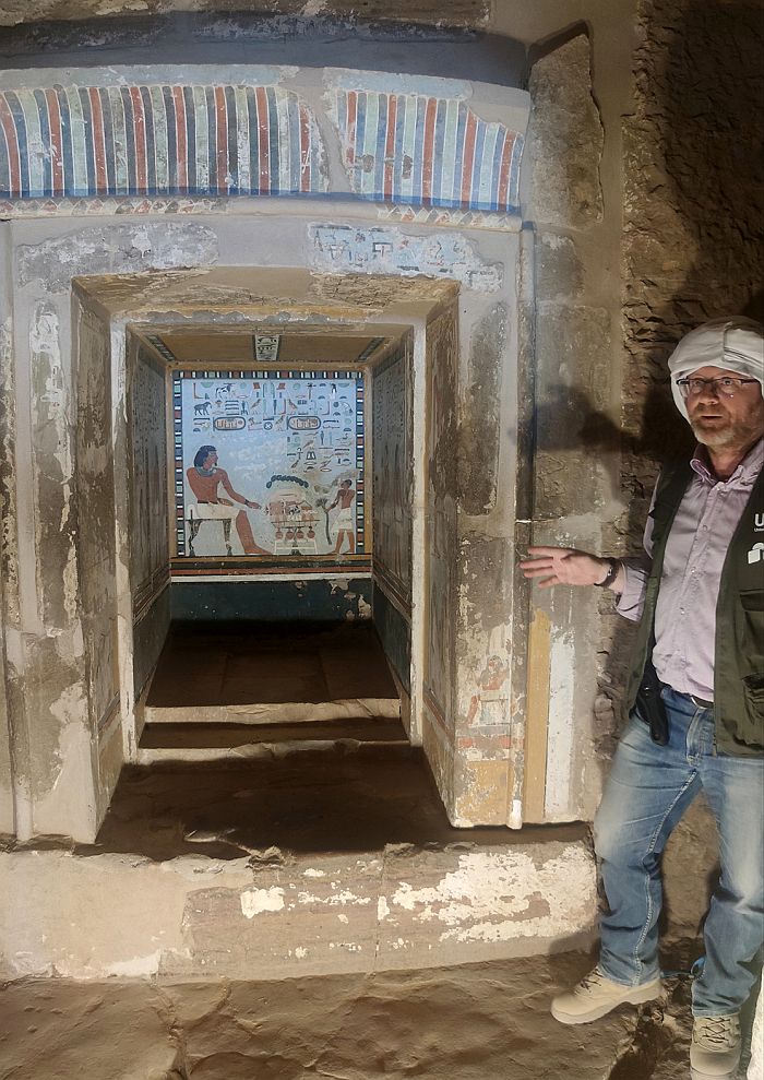 Alejandro Jiménez explicó que “nuestras investigaciones se han centrado en este yacimiento donde se encuentran las tumbas de los gobernadores de la provincia más al sur de Egipto. Tuvimos la suerte de encontrar tumbas relacionadas con la familia que gobernó esta provincia durante más de tres siglos. Son más de 10 cámaras que han permanecido intactas y nos da una historia de Egipto diferente porque no se hace desde la perspectiva de la corte del faraón, sino desde la periferia, desde el Egipto de las provincias de los gobernadores. Es una mirada que siempre te ofrece una perspectiva mucho más cercana de cómo funciona una sociedad”.