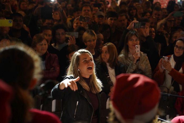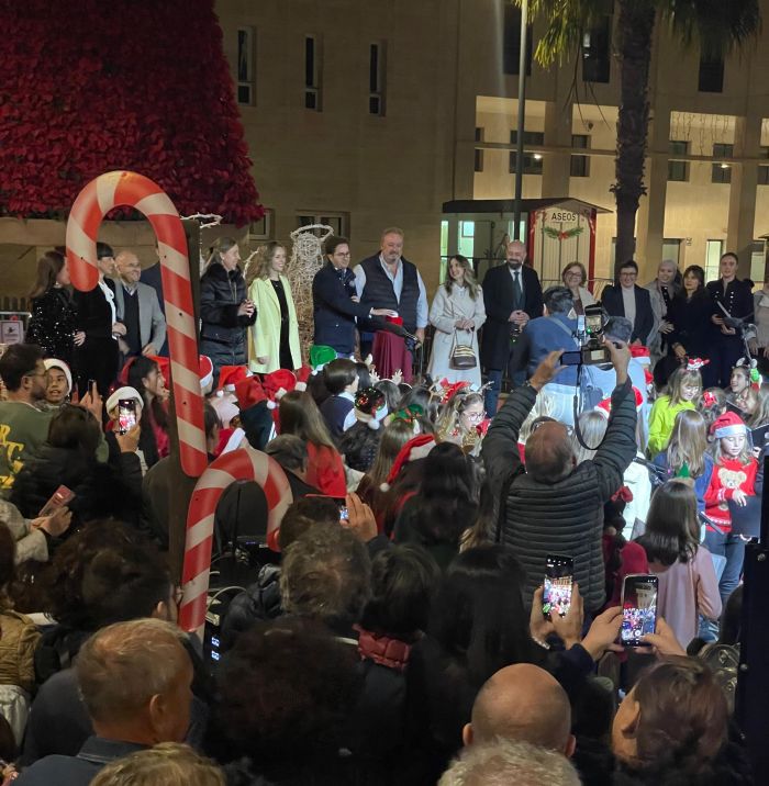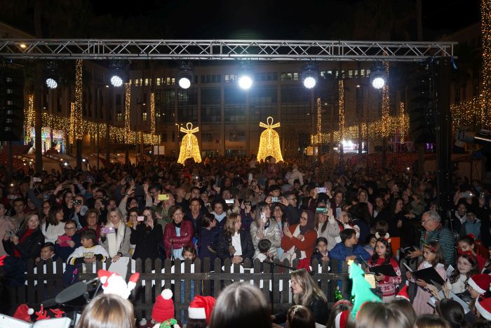 El alcalde Francisco Góngora, junto a los concejales del equipo de Gobierno y de la Corporación Municipal, ha dado la bienvenida. El regidor ejidense primero ha felicitado al Coro del Conservatorio que “cada año hacéis que este momento sea más especial” y después ha trasladado su deseo de que todos los ejidenses vivan “una Feliz Navidad con vuestros seres queridos” justo antes de iniciar la cuenta atrás para el encendido del alumbrado en la Plaza Mayor, que ha permitido disfrutar de un espectáculo de luz con las luces instaladas en árboles y palmeras, una cascada en la fachada y un escenario sobre el que se ubica un nacimiento a tamaño natural al pie del inmenso árbol decorado con más de 2.000 flores de Pascua que preside la Plaza Mayor. También suma dos figuras gigantes en forma de campana.