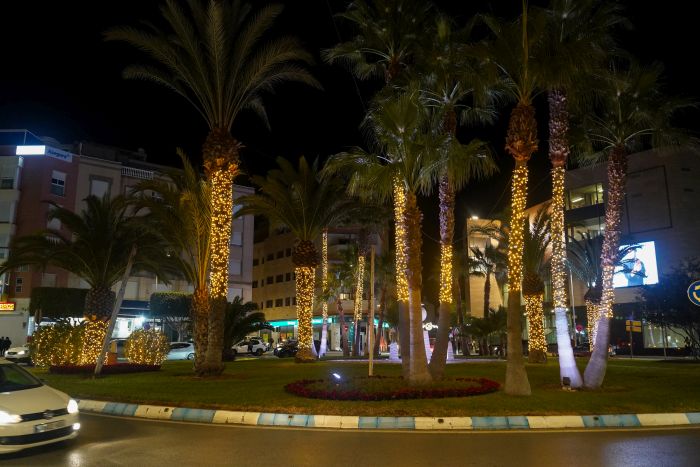 El alumbrado cuenta esta edición con alrededor de 900.000 puntos de luz, que incluyen 160 arcos, más de 150 palmeras, 80 árboles naturales, 4 grandes pinos de Navidad, 4 figuras gigantes en 3 D, los ya tradicionales letreros de Feliz Navidad, iluminación de elementos patrimoniales como la Torre de Balerma y el Daymun, y elementos decorativos en los distintos núcleos que invitan a fotografiarse