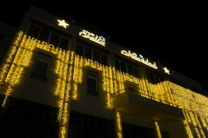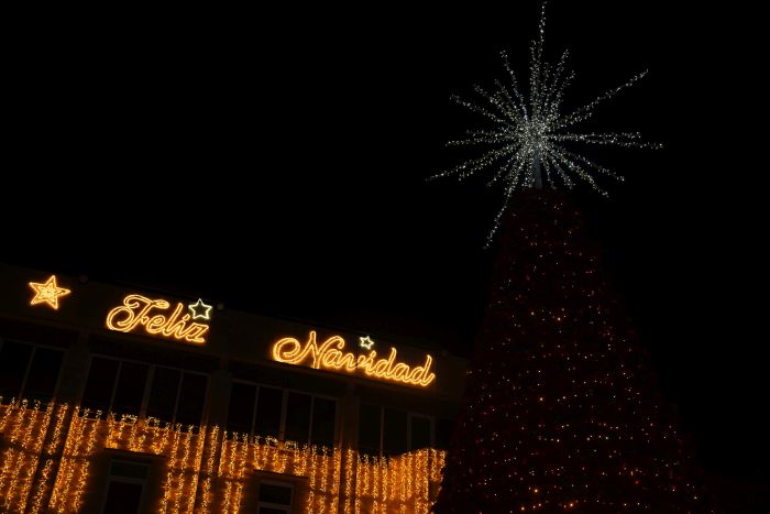 La Plaza Mayor cuenta con una elegante y espectacular iluminación, con una cascada en la fachada, un nacimiento a tamaño natural al pie del inmenso árbol decorado con más de 2.000 flores de Pascua y dos figuras en forma de campana