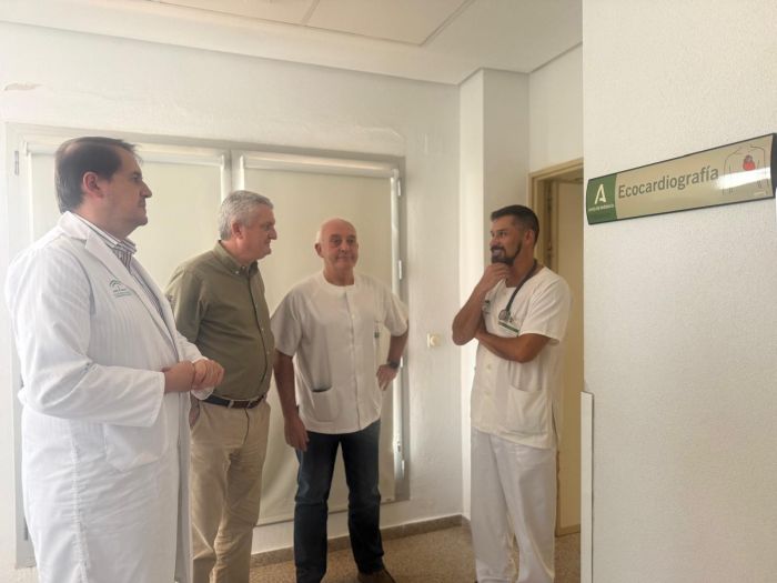 El delegado territorial de Salud y Consumo, Juan de la Cruz Belmonte, ha visitado el Servicio de Cardiología del hospital de Huércal-Overa acompañado del director gerente del Área de Gestión Sanitaria Norte de Almería, José Miguel Medina, donde ha destacado que el ecógrafo de última generación para las consultas externas incorporado en 2024 “ha supuesto una mejora sustancial por las prestaciones que incluye, que han permitido mejores flujos de trabajo y una mayor eficiencia, al contar con herramientas de diagnóstico avanzadas que proporcionan información clara y rápida sobre el estado del paciente”.