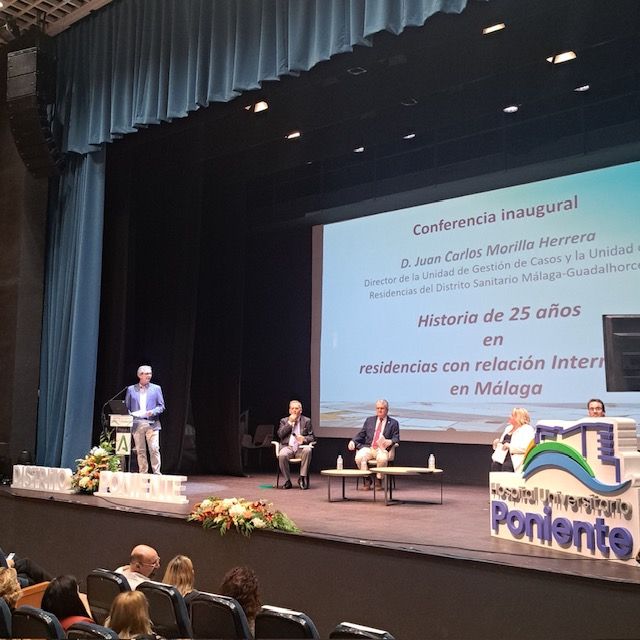Tras la inauguración oficial, el programa de trabajo ha comenzado con la conferencia ‘Historia de 25 años en residencias con relación interniveles en Málaga’, impartida por Juan Carlos Morilla, director de la Unidad de Residencias del Distrito Sanitario Málaga-Guadalhorce.