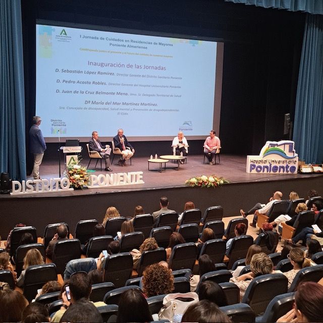 El Hospital Universitario Poniente y el Distrito Sanitario Poniente de Almería han organizado la I Jornada de Cuidados en Residencias de Mayores del Poniente Almeriense, que ha tenido lugar en el Teatro Municipal de El Ejido. El encuentro ha reunido a profesionales de atención primaria y hospitalaria, junto a quienes desarrollan su labor profesional en los centros residenciales, con el objetivo de abordar los retos y desafíos que plantea ofrecer asistencia sanitaria de calidad a las personas que viven en residencias de mayores.