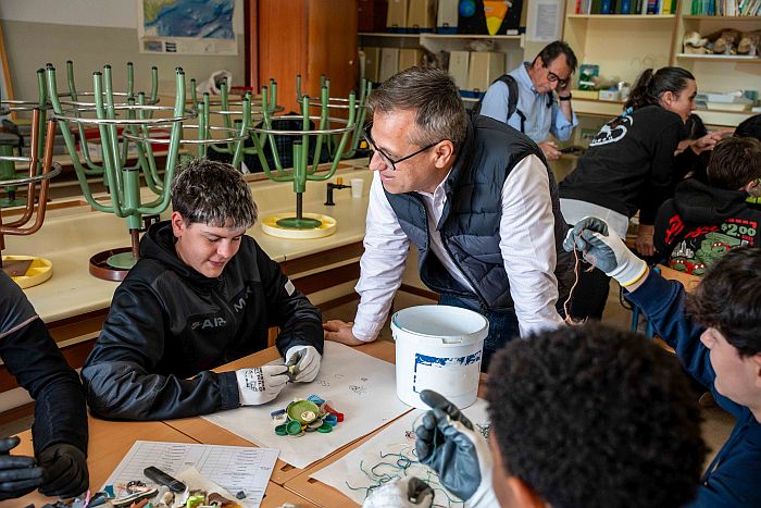 Esta mañana, el concejal de Sostenibilidad Medioambiental y Energética del Ayuntamiento de Almería, Antonio Urdiales, ha visitado el IES Argar de Almería, donde ha comenzado a desarrollarse esta iniciativa de concienciación, investigación y divulgación que tiene como objetivo principal mejorar la gestión de los residuos en los ecosistemas marítimo-terrestres. Ha estado acompañado por la responsable de Objetivo Newen, Mónica Motos, y por el director del centro, Juan Carlos Castilla.