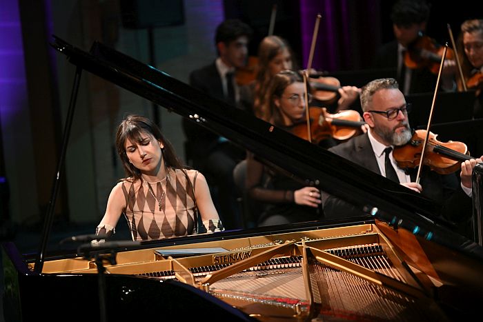 En ese delicado entramado ha brillado la pianista Susana Gómez Vázquez, cuya interpretación ha sabido habitar cada uno de los registros emocionales de la obra. Con una pulsación precisa y una expresividad contenida pero elocuente, ha logrado convertir cada frase en un gesto significativo, estableciendo un diálogo fluido con la orquesta y con el propio compositor en el podio. Su presencia ha sido clave para dotar de coherencia y profundidad a una partitura que exige tanto virtuosismo como sensibilidad.