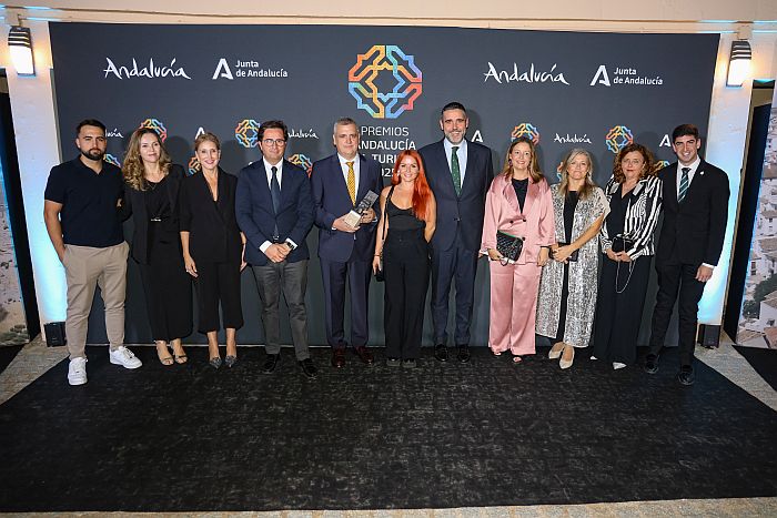 El alcalde de El Ejido, Francisco Góngora, la parlamentaria Julia Ibáñez, y la concejal de Turismo, María Herminia Padial, acompañaron al chef Estrella Michelín, José Álvarez, a la gala de entrega en Archidona, presidida por Arturo Bernal, consejero de Turismo y Andalucía Exterior.