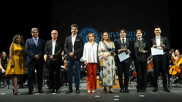 Ha subrayado la colaboración inestimable del Consejo Social de la UAL, “sin la apuesta que está realizando y sin la confianza que tiene en el Vicerrectorado no sería posible el concurso”, añadiendo que “este año se ha sumado Michelin a la financiación”, sin olvidarse “de la colaboración del Ayuntamiento de Almería, cediendo este este espacio, y de la Fundación Unicaja”. Precisamente Ana Moreno, secretaria del Consejo Social, ha afirmado que para el mismo “es un orgullo apoyar a la Orquesta de la UAL y a este concurso internacional, pues se enmarca en nuestro objeto de acercar nuestra institución académica a la sociedad, como se refleja con el Auditorio Municipal Maestro Padilla lleno de público”, textualmente. A su vez, Ana Moreno ha puesto en valor que este certamen “conecta la vida académica con la cultura y proyecta internacionalmente a la Universidad de Almería”, como deja patente la cifra de “más de 80 participantes de diferentes nacionalidades”.