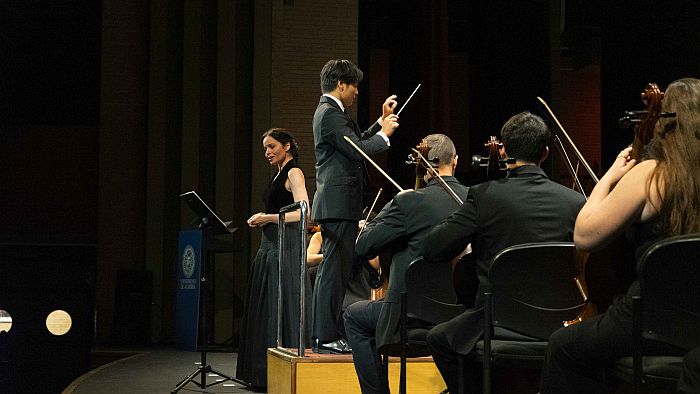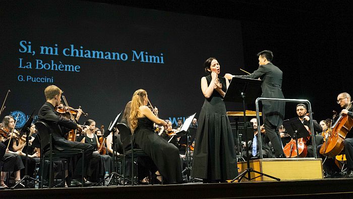 Ese es el repertorio que le correspondió en suerte en el sorteo realizado nada más concluir la semifinal, que le otorgó intervenir en tercera posición. La primera parte ha contado con la excelente interpretación de la soprano valenciana Quiteria Muñoz, que ha sido ovacionada al término de su participación tras acompañar a los cuatro candidatos. La primera en intervenir ha sido Elena Barrios, dirigiendo el ‘Porgi amor’ (Le nozze di Figaro), de Mozart, y el ‘Allegro maestoso’, primer movimiento de la referida Sinfonía nº 7, obra común para todos. En segunda posición ha dirigido Ulysse Derrien, en su caso con ‘Da tempeste’ (Giulio Cesare in Egitto), de Haendel, y con el movimiento ‘Poco adagio’. Ha cerrado turno William Lai, con ‘Si, mi chiamano Mimì’ (La Bohème), de Puccini, así como el movimiento Finale – Allegro’. La final ha contado con la presentación de la directora de Radio UAL, Esther Benavides.