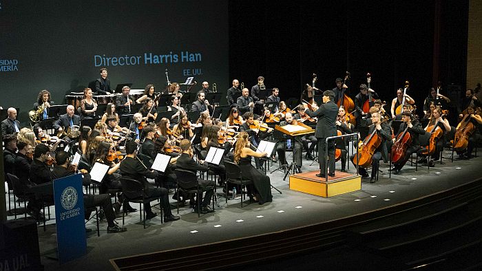 Lo único claro antes del inicio del concierto era que una nueva nacionalidad iba a sumarse a las que hasta ahora figuraban en el palmarés del Concurso Internacional de Dirección de Orquesta de la Universidad de Almería. Procediendo los cuatro finalistas de esta quinta edición de España, Francia, Estados Unidos e Inglaterra, por orden de intervención, quien se alzara con el premio final añadiría al mismo tiempo un país nuevo al cuadro de honor de ganadores del certamen, compuesto hasta este año por directores de Alemania (dos veces), Venezuela e Italia. Finalmente, tras una máxima igualdad en los ensayos como en el concierto, el quinto nombre inscrito en el palmarés de esta prestigiosa cita, organizada por el Vicerrectorado de Cultura y Sociedad de la UAL, y patrocinada por el Consejo Social de la UAL, ha sido el de Harris Han, de EEUU, aunque de origen coreano. “Me siento tremendamente emocionado, es un concurso muy conocido, así que es un gran honor ganarlo y me da la oportunidad de dirigir otras orquestas en Europa; será algo que llevaré conmigo siempre”, ha dicho Han, visiblemente feliz, tras darse a conocer el fallo.