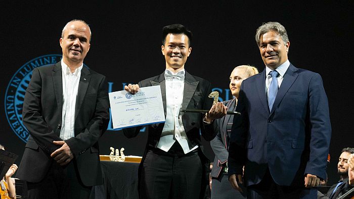 Al hilo de sus primeras palabras como vencedor, cabe recordar que el primer premio está dotado con mil euros y con la dirección de tres conciertos en los próximos meses, además del trofeo y del diploma entregados en el momento. Los conciertos serán con la Orquesta Sinfónica de Pitesti, Rumanía, la Orquesta Sinfónica Ciudad Metropolitana de Bari, Italia, y la Orquesta Filarmónica de Kalisz, Polonia. Es importante destacar que, por primera vez en toda la historia del concurso, y como buena muestra de lo reñido de esta quinta edición, se ha producido un reparto absoluto de los galardones, siendo segunda la española Elena Barrios y llevándose el premio especial concedido por los músicos de la orquesta el inglés William Lai. Finalista ha sido el francés Ulysse Derrien, muy cerca de sus compañeros en calidad y nivel de dirección.