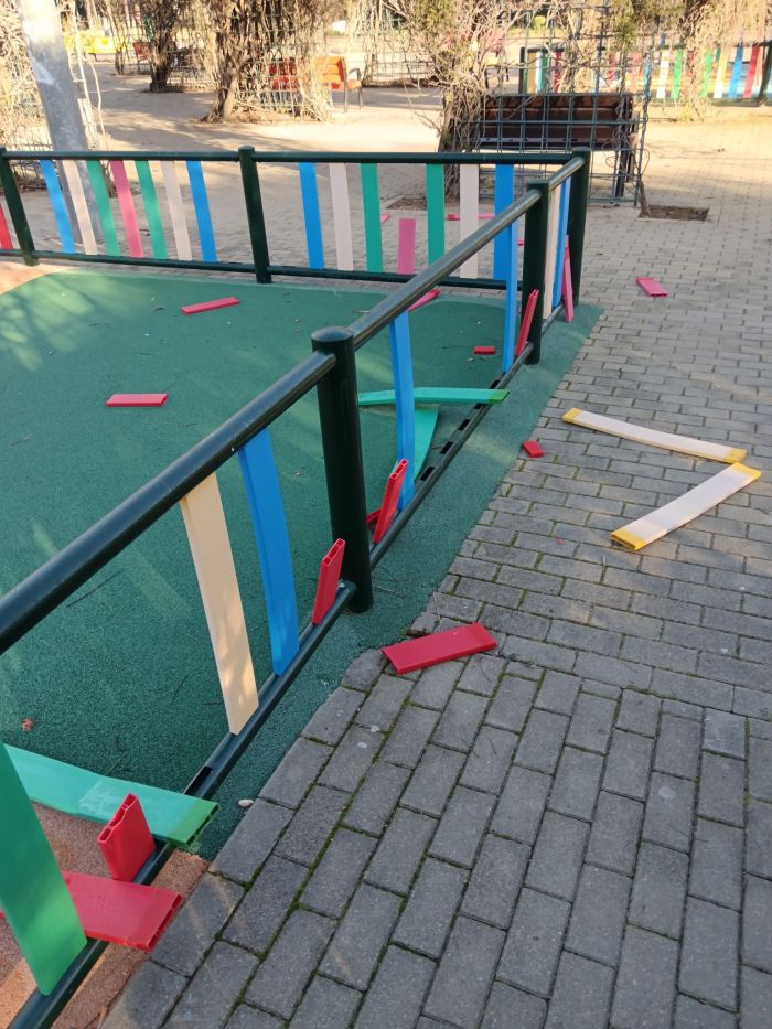 Grupos de adolescentes han provocado graves destrozos en el parque, llegando incluso a quemar parte del suelo de caucho de los parques infantiles, algo que anteriormente ya provocó que ardiera un conjunto completo de mobiliario, el cual quedó inutilizado durante meses. Vemos cómo las quejas de los vecinos caen en saco roto cuando son trasladadas al Ayuntamiento de Huelva, especialmente cuando llaman tanto a la Policía Local como a la Policía Nacional. Es habitual ver a grupos de jóvenes destrozando cada fin de semana alguna parte del parque sin que ningún agente se persone para acabar con este vandalismo, teniendo en cuenta, además, que en muchas ocasiones estos hechos no ocurren fuera del horario de cierre de esta zona verde.