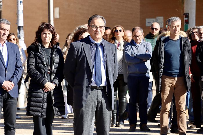 La comunidad universitaria para su actividad y se concentra multitudinariamente sobre el escudo de la institución, compartiendo el dolor por las numerosas personas fallecidas y deseando una pronta recuperación de las heridas