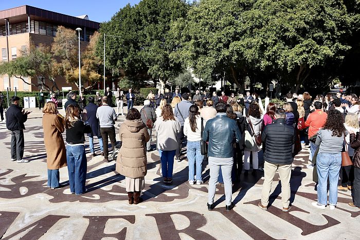 Tras unas breves palabras del rector, José J. Céspedes, agradeciendo la asistencia y lamentando los luctuosos hechos del domingo en Adamuz, se ha dado inicio al minuto de silencio. Una vez finalizado, la UAL ha roto en un aplauso sostenido tras el que, todavía, se ha mantenido el silencio en la vuelta a los respectivos puestos de trabajo. Este profundo respeto mostrado por la Universidad de Almería ha sido común en Andalucía, como ha querido poner en valor Céspedes: “Ha tenido lugar en todos los campus universitarios de las universidades públicas andaluzas, expresando el recuerdo y la solidaridad de toda la comunidad universitaria”. El rector ha hecho mención a las víctimas, pero también a “las familias y seres queridos de las personas afectadas”.