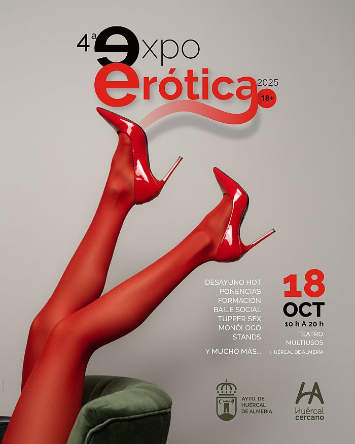 El Ayuntamiento de Huércal de Almería organiza la cuarta edición de Expoerótica, que se celebrará el sábado 18 de octubre y que se trata de una feria de sexología pionera en la provincia de Almería enfocada a la formación y asesoramiento sexológico.