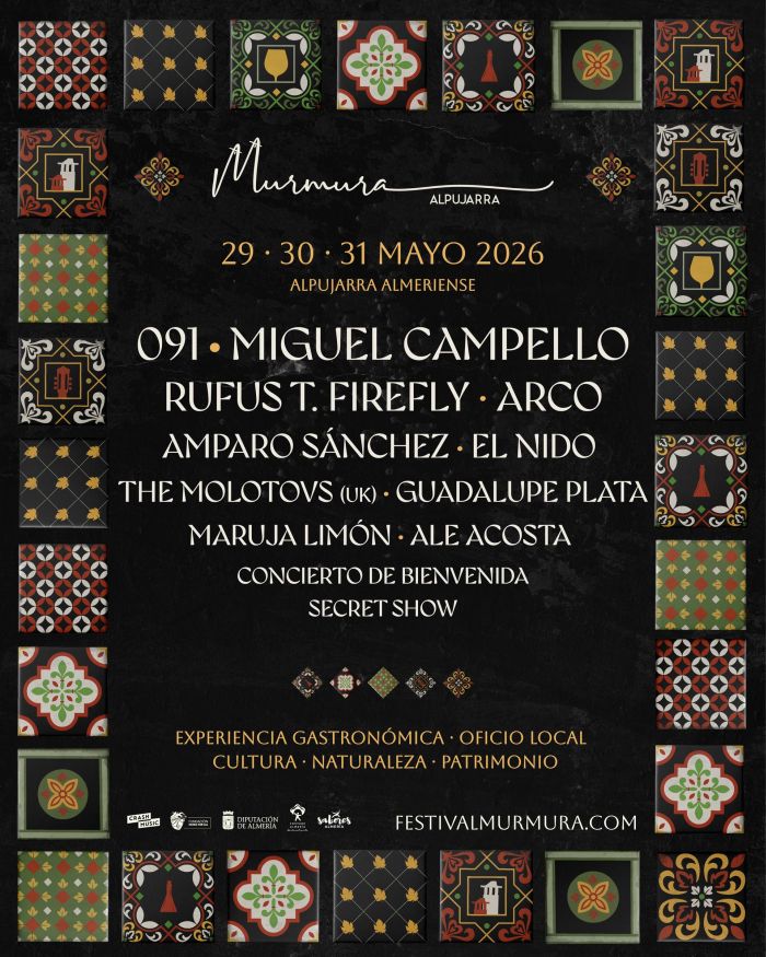 Empezó siendo ‘un rumor’ y hoy es ya un secreto a voces. Festival Murmura es uno de los mejores y más reputados festivales ‘bouquet’ de la escena musical de todo el país y volverá a la Alpujarra Almeriense el próximo año 2026 con su sexta edición y con un cartel que pondrá banda sonora de primer nivel a las bondades de la excelencia gastronómica y riqueza natural de este espacio de la provincia. Las fechas serán el 29, 30 y 31 de mayo.El festival que organiza Crash Music con el apoyo de la Diputación Provincial de Almería, Costa de Almería, Sabores Almería y con toda la labor inclusiva de la Fundación ‘Music For All’ lanzará las entradas y abonos a la venta el próximo viernes, 26 de diciembre, a través de la página web oficial https://festivalmurmura.com/, donde se puede consultar ya los horarios y escenarios principales y donde también se podrá adquirir pase para los autobuses lanzadera.Que ‘Murmura Alpujarra’ es un festival distinto a todos es algo que lleva en su ADN desde su nacimiento en la primavera de 2021. El cartel conformado para la próxima edición es buena muestra de ello. En cabeza estará 091, la banda rockera granadina comandada por José Ignacio Lapido y José Antonio García es toda una garantía de actitud y canciones atemporales. De pasión y corazón sabe y mucho Miguel Campello, quien fuera voz del grupo de culto Elbicho y que sigue mezclando sus melismas flamencos con todo tipo de músicas.Rufus T. Firefly hará volar la imaginación del público a base de una psicodelia reposada que a veces se hace sintética y otras más distorsionadas pero siempre con buen gusto. Algo que también sabe, y mucho, Arco. El que fuera motor de El Puchero del Hortelano ha forjado una sólida carrera en solitario con discos que transmiten verdad, honestidad y una capacidad de conectar con el público a prueba del paso del tiempo. La voz inconfundible de Amparo Sánchez (de Amparanoia) volará libre en la próxima edición de Murmura, como los burgaleses El Nido, que se han convertido en una de las últimas revelaciones del folk.Desde las islas británicas llegarán The Molotovs, que aportarán otra dosis genuina de rock con la insultante juventud de dos hermanos, chico y chica, que no fue impedimento para abrir conciertos de Iggy Pop o ser recomendados por Blondie. Guadalupe Plata pondrá toda su fuerza instrumental y vocal para dar más calor al festival, mientras que Maruja Limón harán lo propio desde su denominación de origen almeriense y Ale Acosta (antes en el dúo Fuel Fandango) ofrecerá su siempre elegante querencia electrónica.Además, habrá muchas más sorpresas con concierto de bienvenida, secret show y actividades complementarias. De este modo, Festival Murmura volverá a ofrecer en 2026 una experiencia única para todos los asistentes a este evento gourmet donde disfrutar de eventos poco masificados en el mejor entorno, con los mejores sabores y con la mejor y más creativa banda sonora. Todo ello lo convierten en un regalo de distinción para estas navidades.Actualmente es candidato a siete premios de los internacionales Iberian Awards a ‘Mejor festival de pequeño formato’, ‘Mejor promoción turística’, ‘Mejor programa cultural’, ‘Mejor comunicación y estrategia de marketing’, ‘Mejor directo por Rosario Flores’, ‘Contribución a la sostenibilidad’ y ‘Contribución a la igualdad’. Festival ‘Murmura Alpujarra’ se ha convertido en todo un referente de su formato, consolidándose en la agenda primaveral con sus bases fundacionales intactas: conseguir la excelencia aunando música de calidad, los mejores productos gastronómicos de la tierra y las bondades de la naturaleza y de su patrimonio cultural y ambiental.