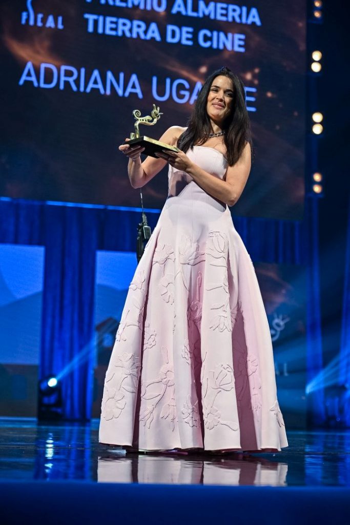 La actriz ha recibido el premio Almería Tierra de Cine de manos del presidente de la Diputación, Javier A. García, en una ceremonia con música, emoción y el brillo de los protagonistas de ‘La Boda’ y ‘Papeles’