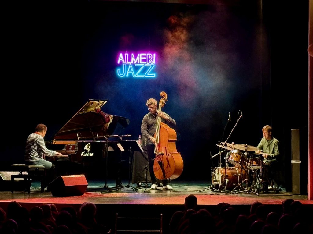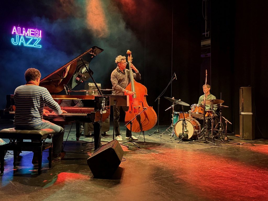 De esta manera, el 33º Festival Internacional de Jazz de Almería reunió sobre el escenario a un trío de músicos de primer nivel internacional. Al piano, el protagonista de la velada fue Jacky Terrasson, pianista reconocido como uno de los grandes nombres del jazz contemporáneo, que alcanzó notoriedad al ganar el Concurso Thelonious Monk, uno de los galardones más prestigiosos del género, y desarrolló parte importante de su carrera en el sello Blue Note, referencia histórica en el mundo del jazz. En esta ocasión, presentó su nuevo proyecto discográfico, Moving On, publicado en su sello Earth Sounds, un álbum en el que combina piezas propias y reinterpretaciones personales de estándares clásicos, que se disfrutaron en el escenario del Teatro Apolo.