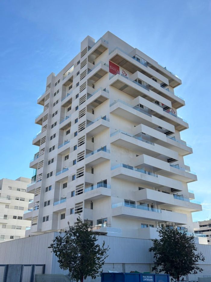 El imponente edificio de 15 plantas alberga 80 viviendas de 1 a 4 dormitorios, con plazas de aparcamiento, trasteros y locales comerciales en planta baja y sótano. Las viviendas están diseñadas con altos estándares de calidad y eficiencia energética, ofreciendo opciones de cocina semiabierta o independiente, pavimento laminado, carpintería exterior con doble acristalamiento, puertas acorazadas y calefacción por suelo radiante mediante aerotermia, combinando confort y sostenibilidad.